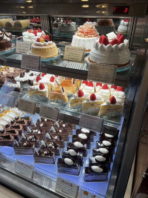 家族の誕生日にプチガトーをと思っていたのですが、ショーケースで一際輝くホールケーキに目を奪われこちらをお買い上げ。足りないかなと思いカットケーキも追加しました。