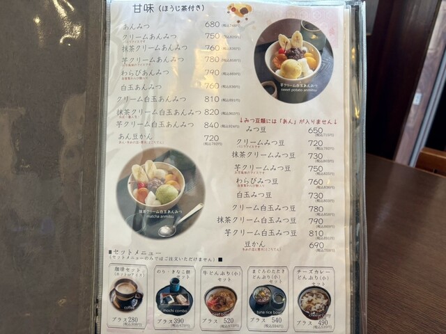 一番人気のあんみつに、お餅のセットを追加、5分と待たずに到着です。