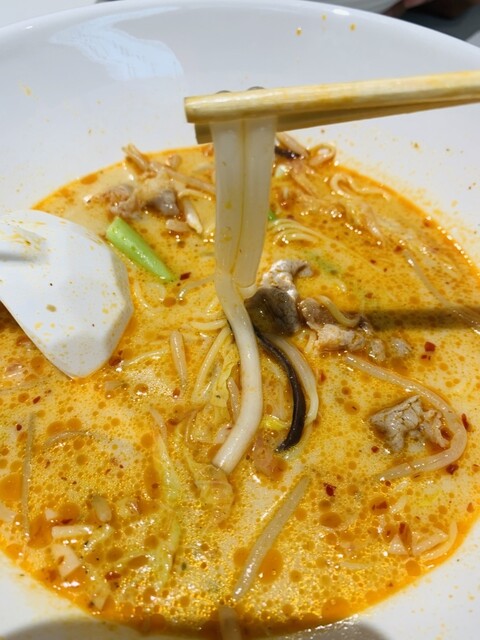 豚骨ベースのスープにこの辛さがクセになります。
