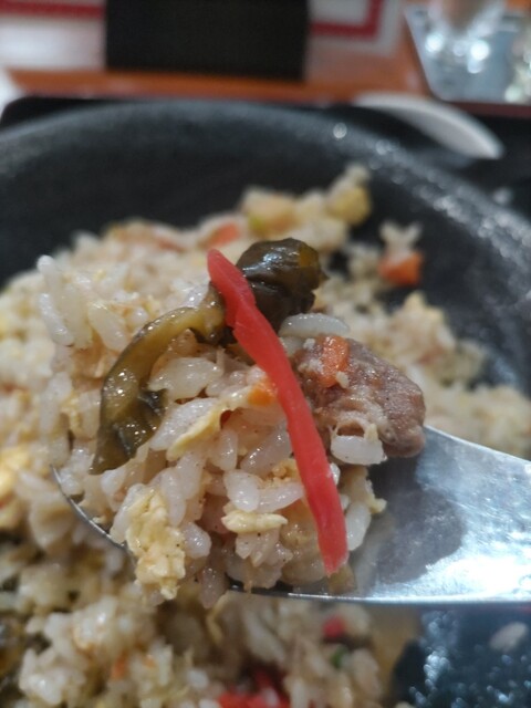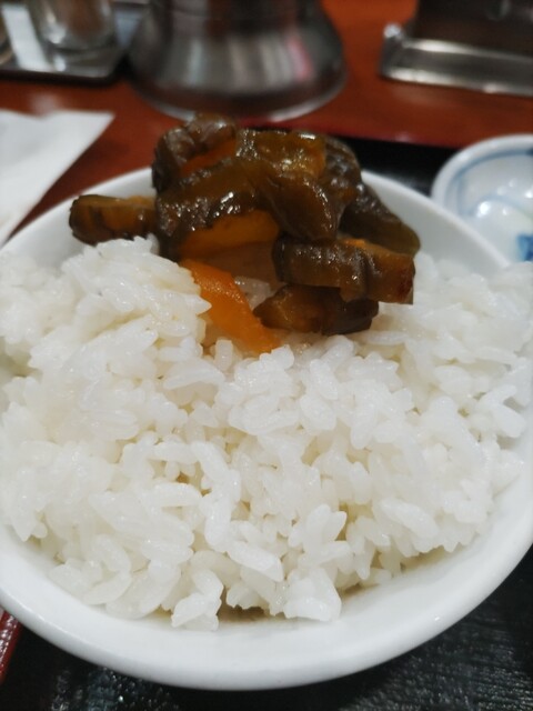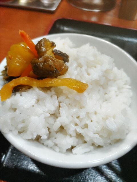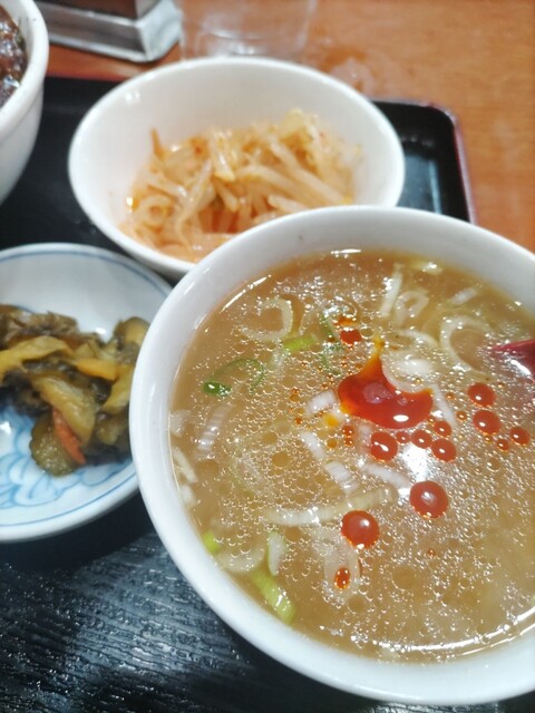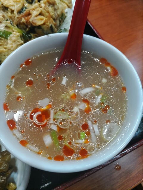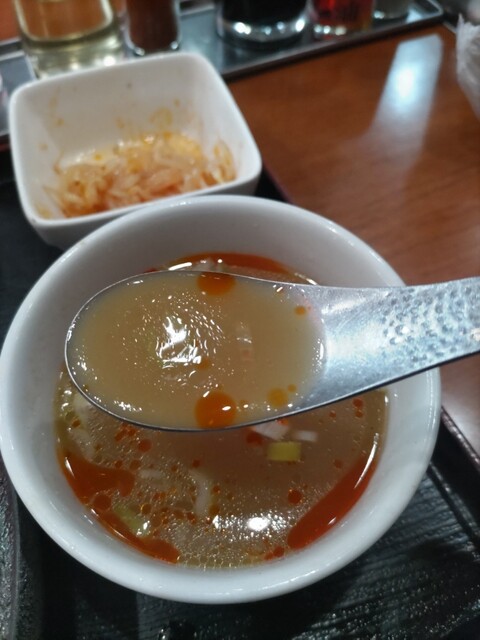 13時前に訪問しました。おそらく2021年11月26日以来、約3年ぶりに「青椒肉絲定食」を注文。長らく通っていますがこれまで1~2度しか注文したことのないメニューです。後客7名のうち3名が青椒肉絲定食を注文。今まであまり意識していませんでしたが結構な人気メニューのようです。数分で到着。まずはスープに酢と辣油を投入。以前より青椒肉絲の量が減った印象ですが、何せ3年ぶりなので定かではありません。でも今はこれぐらいが丁度良いかも。味は抜群。細切り肉、ピーマン、竹の子にタレと油が絡んで美味いですね。ご馳走様でした!