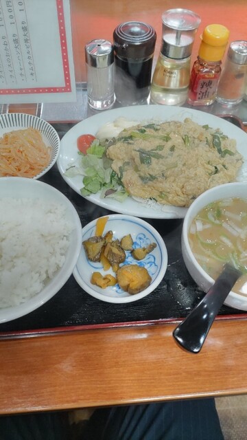13時少し前に訪問。約1カ月ぶりです。「キムチカルビ丼」と迷いましたが、この日は「十八番」さんのヘルシーメニューである「ニラ玉定食」をオーダー。料理が到着してまずはいつものようにスープにお酢と辣油を投入(投入する前に一口だけ飲みました。もちろんそのままでも美味しいです)。ニラ玉はニラがふんだんに入ったオムレツのような形が特長です。玉子がふわふわ(やや半熟の部分もあり)で美味い。下にはキャベツの千切りが敷いてありマヨネーズを付けながらいただきます。途中でもやしの和え物とお新香を挟みご飯が進みますね。ご飯も自分には丁度良い量です。うん、素晴らしい定食。次回は麺類にしようかな。どうもご馳走様でした!