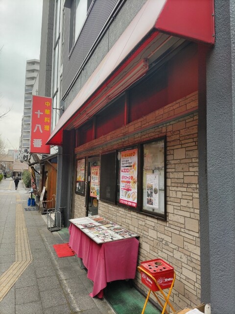 この日のランチも中華にします。「十八番」さんへ早めの11時半前に到着。こちらのランチメニューの中では最もヘルシーだと言える(卵をたくさん使用しているのでそんなこと無いか)「ニラ玉定食」を注文。いつもの儀式(スープに酢と辣油を投入)を終えてからいただきます。ふんわり卵に絶妙な味付け(どういう味付けをされているんだろう)。ニラ玉の下に敷いてあるキャベツの千切りとレタスが良いアクセントになり、さらにマヨネーズを混ぜていただくと味わいが変わりご飯が進みます。ちょっと物足りない(ボリューム的に)ような気もしたけど、前日のランチが結構ヘビーだったので丁度良いか。どうもご馳走様でした!