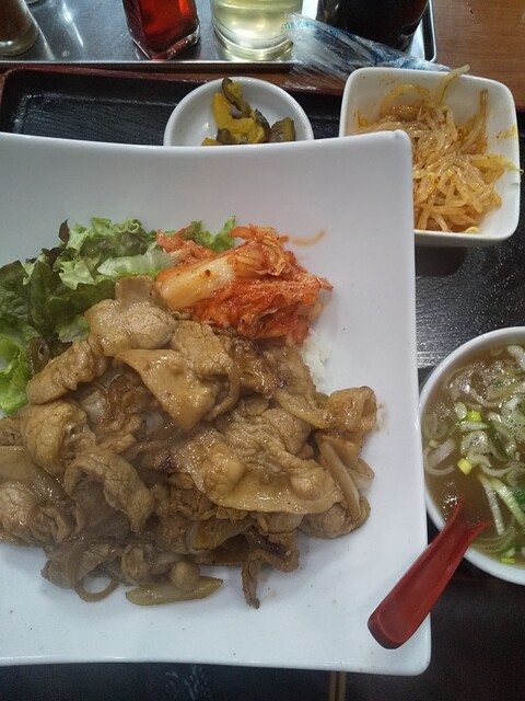 いつもより遅めの13時15分過ぎに伺いましたが、混んでますねー。ハマる人にはハマるお店なのだと思います。私もその1人です。初訪問と思われる隣のテーブルの方がイラついていましたが、細かいことは気にしないのがこちらのお店を楽しむコツなんですよ。食事は楽しまないと。約半年ぶりの「キムチカルビ丼」。いつもよりお肉の量が多かったような気がしました。嬉しいですね。店主がややお疲れ気味のように見受けられましたが、体調にはご留意され、これからも美味しく楽しい料理をご提供いただけることを願っています。ご馳走様でした!