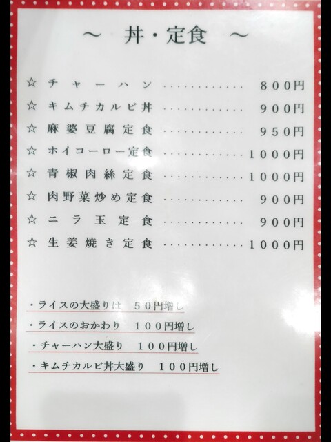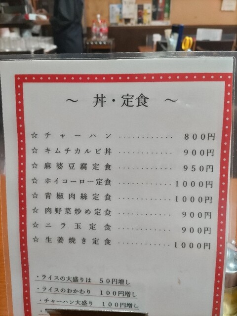 以前にメニュー表にも壁の写真にもない「中華丼」を注文していたお客さんがいたけど、(数年前から)ランチメニューを絞るようになった今でも注文できるのだろうか。