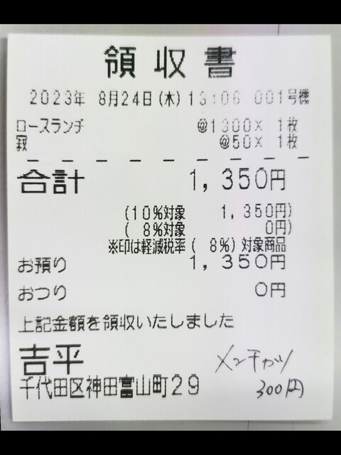【最終訪問】吉平@神田富山町「ロースランチ、寂、メンチカツ」