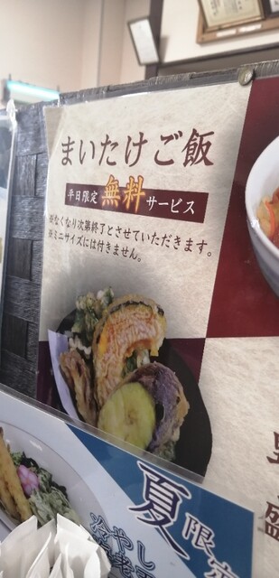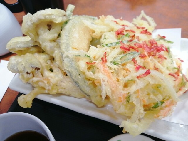 かき揚げ、かぼちゃ、舞茸、葉物不明?