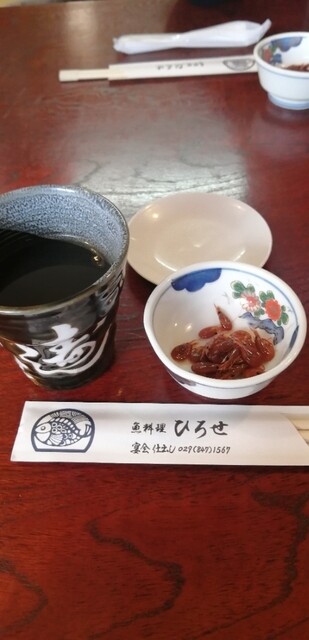 すぐに海鮮丼2つお願いして…その際に小皿、お箸と小海老の佃煮を持ってきてくれました。