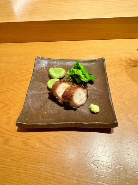 前菜から美味すぎた。よく煮込まれたタコはわさび菜とよく合う…