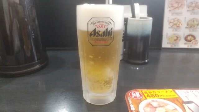 速攻で『生ビール』と『焼豚ラーメン』を注文です。すぐに『生ビール』がやってきました。大好きなスーパードライです。ギンギンに冷えていて、うーん、うまい!
