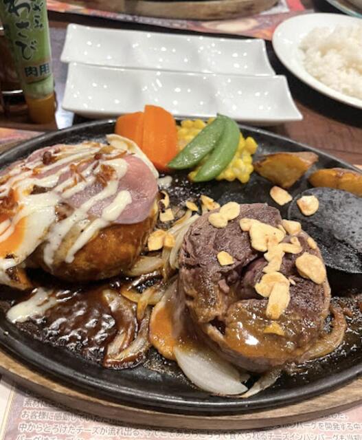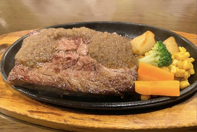 ステーキとハンバーグのお店です。店舗は入口にはテンダーロインやTボーンなどの部位がショーケースに入っております。そして中はステーキハウスをイメージした雰囲気です。ハンバーグと言えば至近距離に某FGさん...