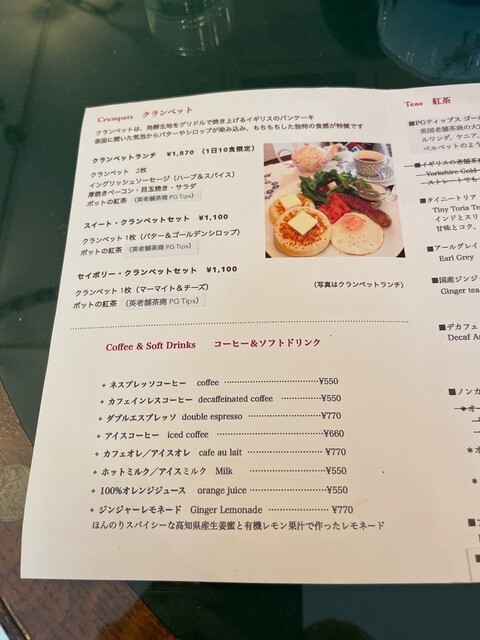 最初に紅茶がきて飲んでいると、クランペットランチが登場。