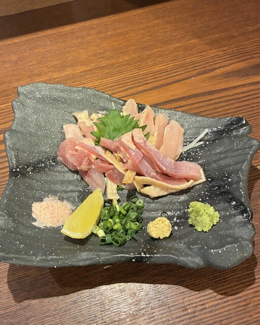 地鶏刺しは食感が心地よく噛むほどに旨みが広がります。素材の良さを感じられる味わいでした。