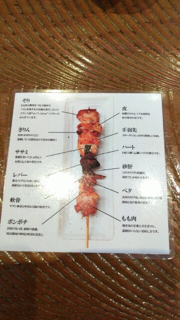 色々な部位が一本の串に刺さっています