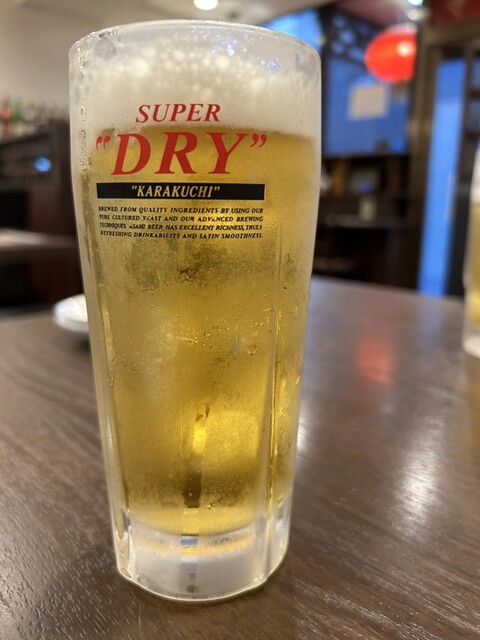 まずは生ビールと水餃子(ラー油)をオーダー♪