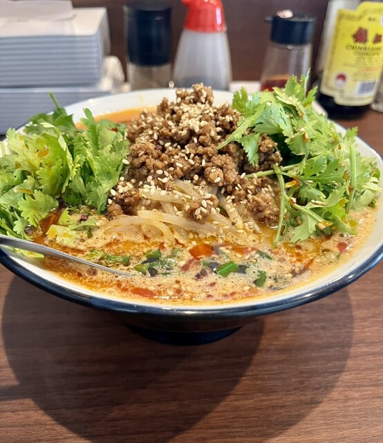 白胡麻担担麺パクチー増し( ‘-^ )bウマイ