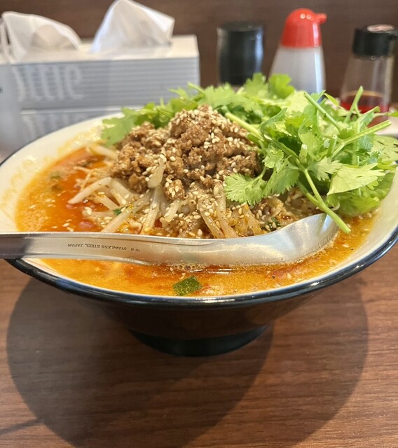 白胡麻担担麺パクチー増し( ‘-^ )bウマイ