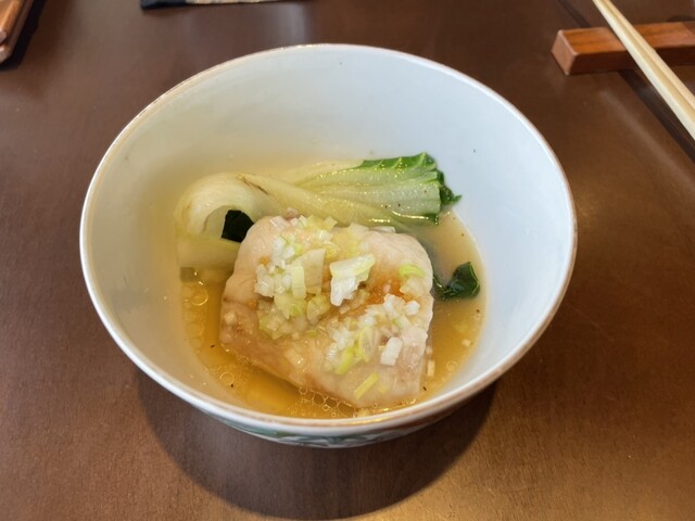 ・鱸(七ヶ浜産神経締め)と広東白菜の蒸し物