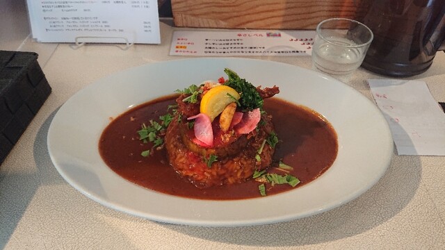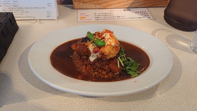 今日で最終のメニューの自家製能登牛入バーグカツカレー 有機野菜入 特盛 チョイ辛を(^o^)
