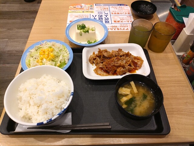 スタミナ豚バラ炒め定食特盛、冷やっこ