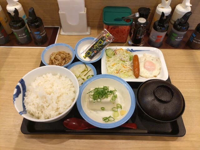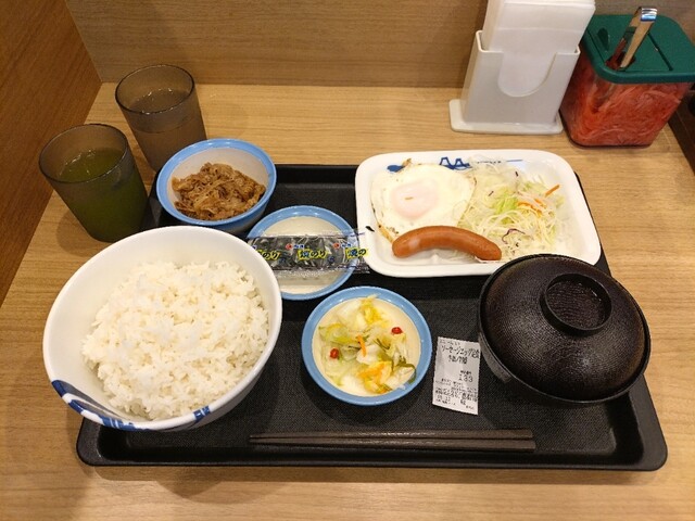 ソーセージエッグ定食牛皿/ライス特盛