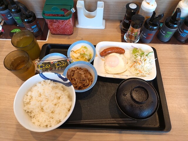 ソーセージエッグ定食特盛 牛皿