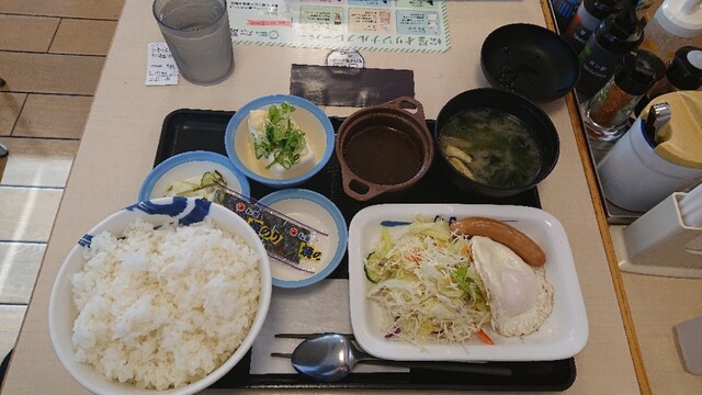 ソーセージエッグ定食 ライス特盛\カレー\冷奴