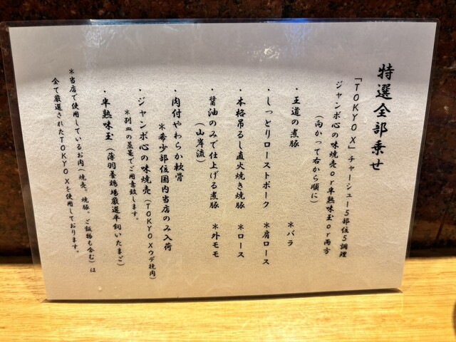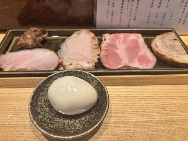 事前に配布された部位ごとの説明書きを確認しながら頂くチャーシューはどれもが芳醇な味わいで食べ応えあり。もちろん味玉も美味しかったです。