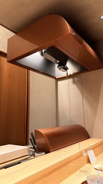 天麩羅揚げ場がカウンターの正面にあり、パチパチと揚げる音が響いて食欲そそられる。音だけですでに美味い。