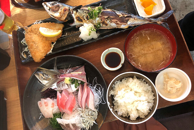 観光客メインでありながら、ちゃんと地元産の魚種にこだわった内容だし、出てきた瞬間びっくりするくらいのメニューの多彩さと量。「単品を頼んで飲む」という楽しみ方はできないけれど、「港町に来た!」「いっぱいのご馳走で出迎えてくれた」っていう実感を味わえます。