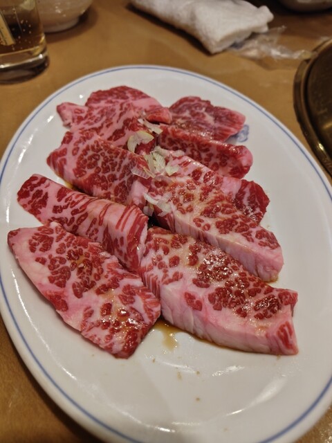 盛られているのは、煌めく特上カルビ、特上ロース、ハラミです。タンも丁...