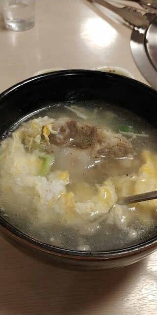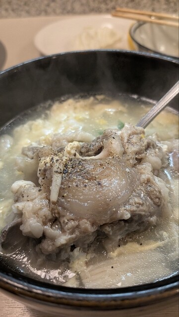 運ばれてきたのはアツアツのテールスープ。中にはデッカイテール肉の塊が溶き卵と一緒に泳いでいる。