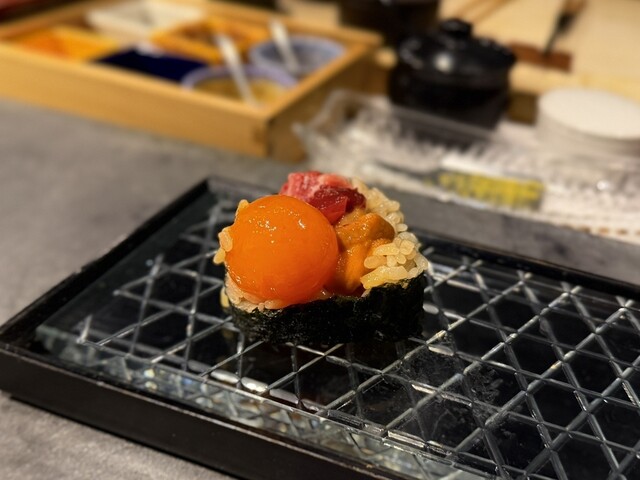 写真の通り、ウニ、柔らかいトロ、たっぷりです。大きな黄卵はもう濃厚です。