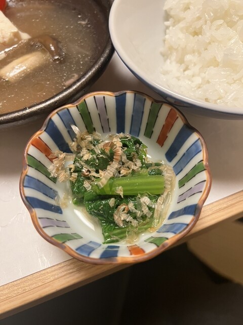 山葵菜お浸し。上品な味わいで箸休めにぴったりでした