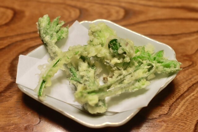 山菜の天ぷら(こごみ、ふきのとう、コシアブラ、ウド?)