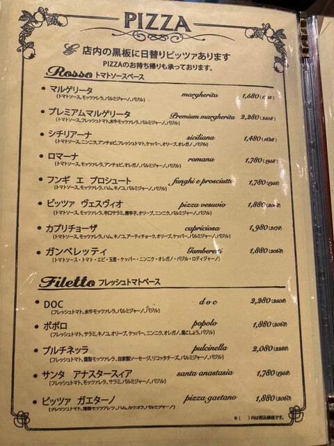 食べきれないピッツァは種類によっては持ち帰りできるようです。