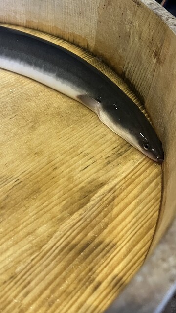捌く前に三重産の鰻を桶に入れて店に来てくれた♡