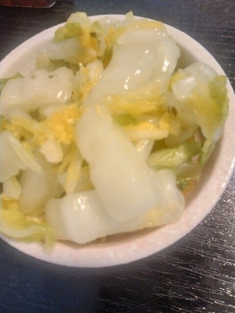 刻みのり、長ネギ(やくみ)、わさび、天かす、白菜の浅漬け(ゆず味)
