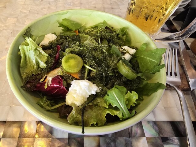 青トマトやモッツァレラブッファラに加え、「海ぶどう」が入っているのが沖縄らしくて友人も喜んでいました。