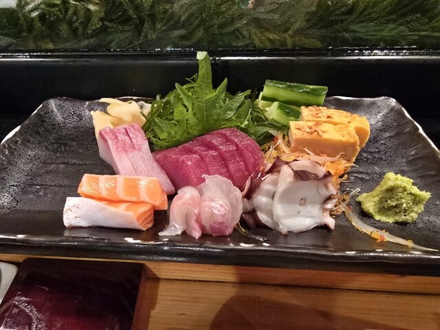 まずは「刺身盛合せ」を注文し、二人でシェア。