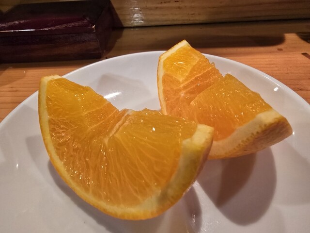 食後にはオレンジのサービスまでいただき、最後は口の中もさっぱり。