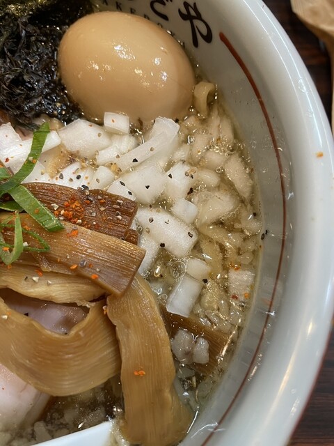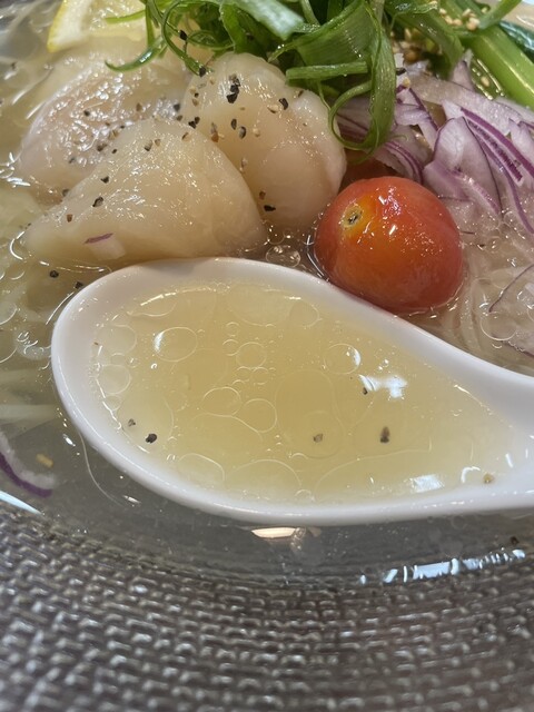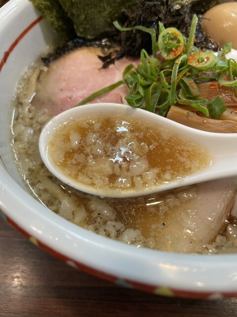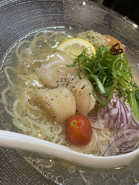 焼きアゴの煮干感強めですがあっさりしていて帆立、乾物の旨味たっぷりの塩ダレが効いています