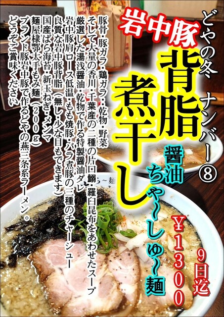 岩中豚背脂煮干し醤油ちゃ~しゅ~麺