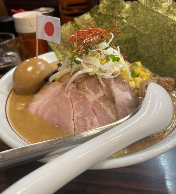 大量の味噌には欠かせないコーン、海苔に味玉等のトッピングもこの濃厚スープにピッタリです