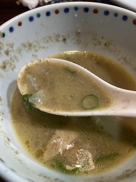 鰯の程よいエグ味に背脂の甘味のバランス最高で大量の背脂が乗っているがくどさなくスッキリな味わい、巷の煮干スープとはちょっと違った鰯の風味が残る絶品スープ