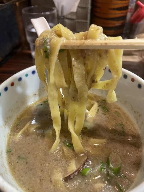 麺は棣鄂の手揉みの太麺、モチモチ、やや硬めでモチモチ‼️