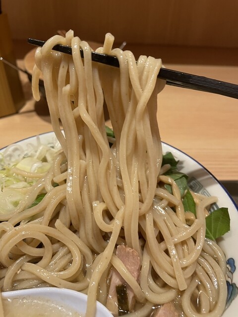 茗荷の苦味、大葉の薫りが魚介スープと麺に絡んでめちゃ旨っ❣️