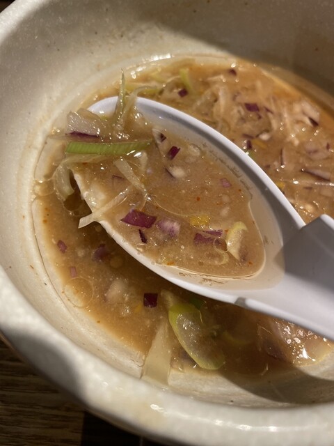瞬く間に麺完食‼️ 最後はクリーム昆布水と貝出汁スープを一緒に割スープを完飲