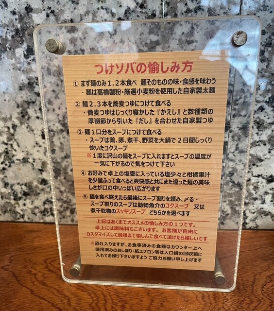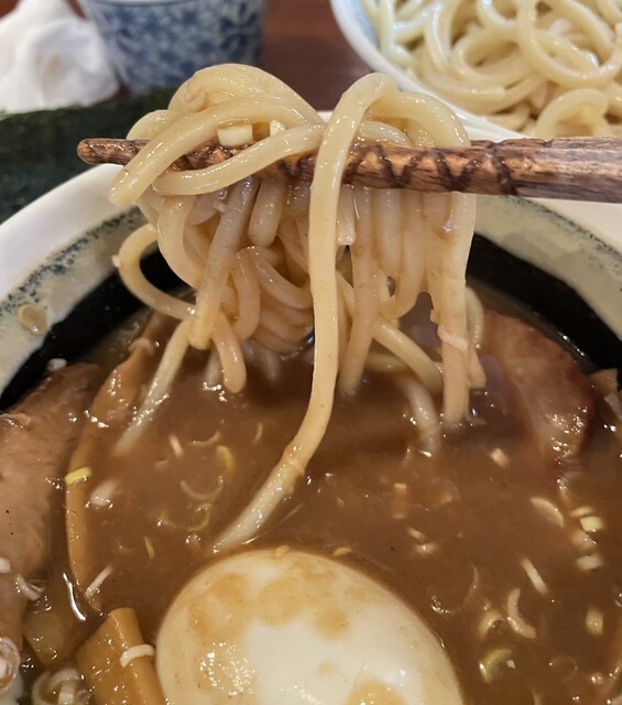 鶏豚煮干野菜をじっくり煮込んだ濃厚スープにつけながら食べ進めます。濃厚なんですがややシャバ系のコクのあるスープは巷の豚魚とは類を見ないめちゃくちゃ美味しい‼️ 高橋製粉の厳選小麦を使用した自家製太麺は硬めでモチモチ旨い❣️喉越し良く、小麦の旨味満載です