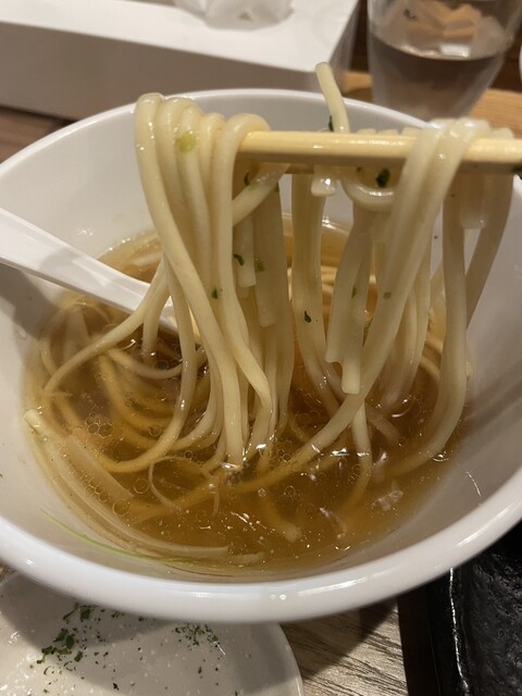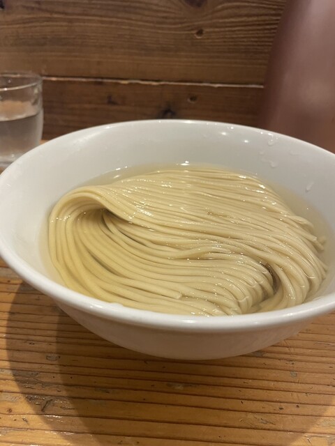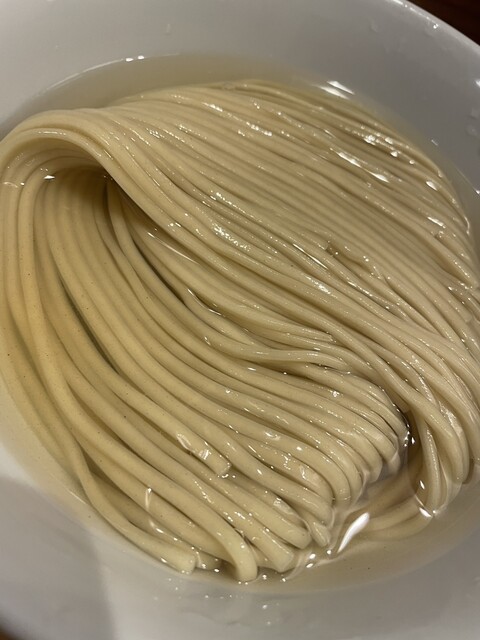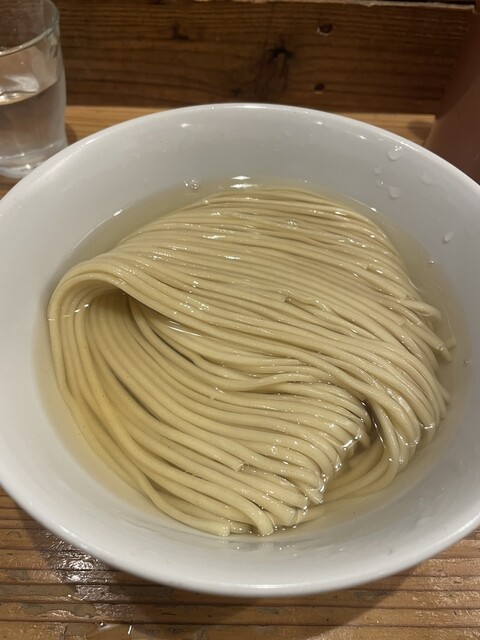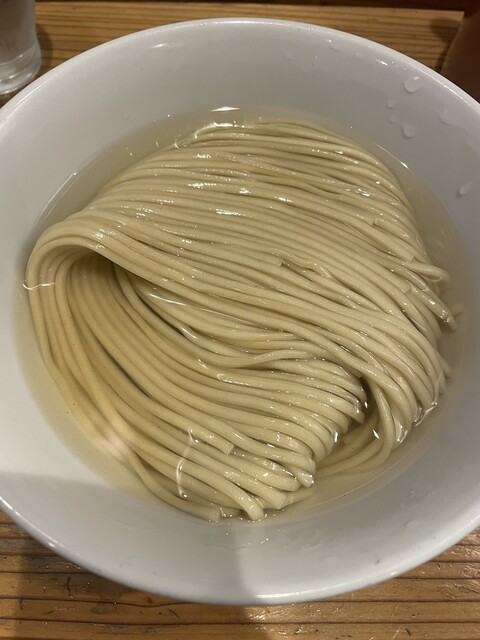つけ汁は地鶏の旨味満載の塩清湯スープ、牡蠣油の風味がアクセントになりコク旨、弾力性ある麺に絡み旨い❣️