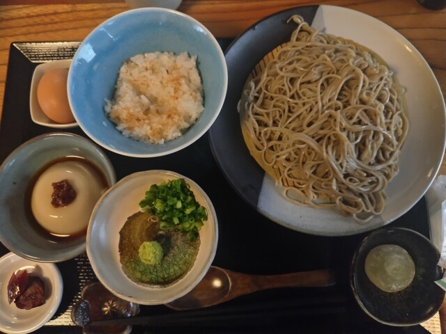 私と娘婿はランチメニューの夢王たまごかけご飯付きの蕎麦定食(ご飯はとろろごはんを選択も可)